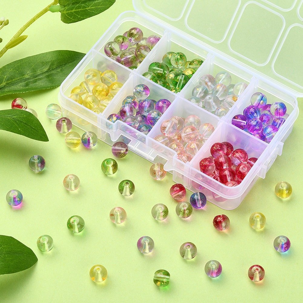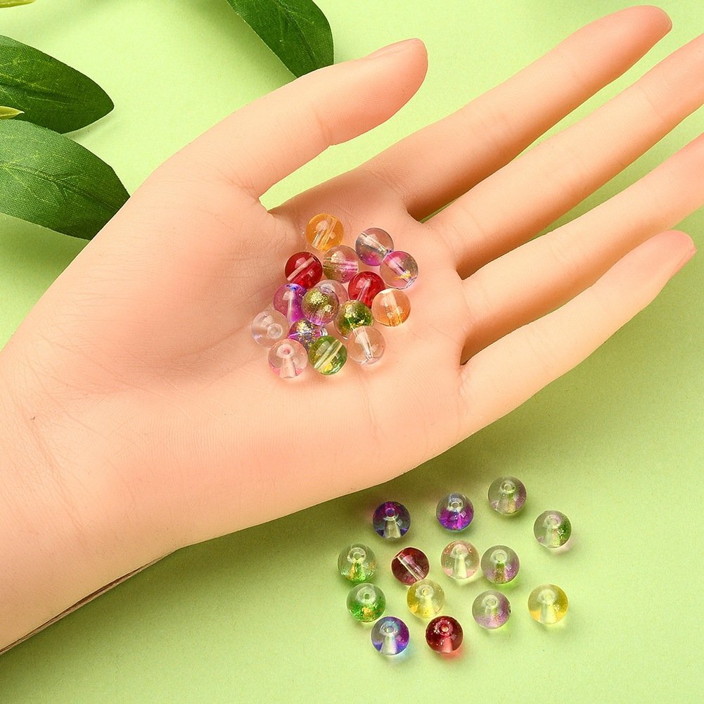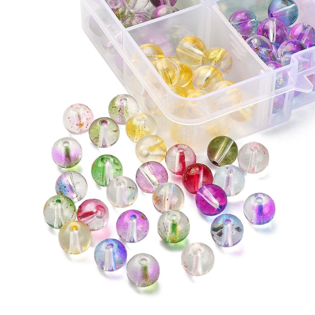 Transparent glass beads with glitter